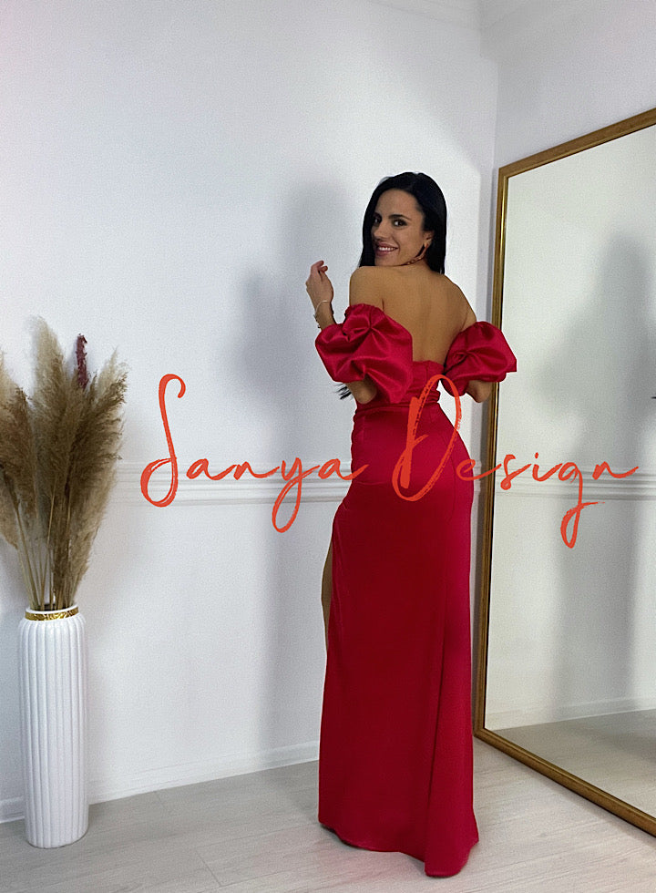 Korset sa zavodljivim puf rukavima od satena koji se mogu skinuti i donji deo suknja sa falticama koje pristaju svim tipovima ženskog tela.